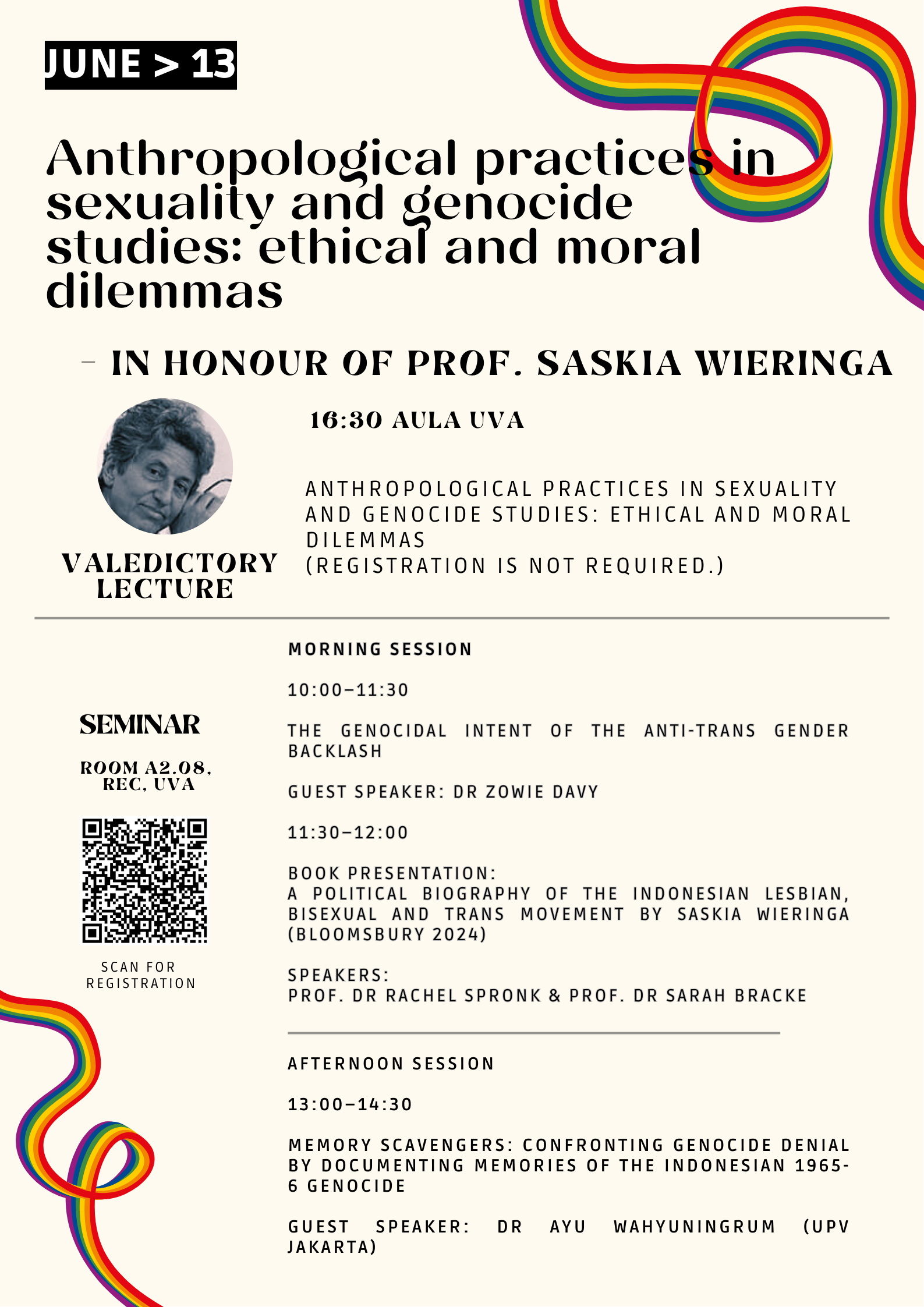 Prof. dr. S.E. Wieringa, bijzonder hoogleraar Gender and women's same sex relations in cross-cultural perspective: Antropologische praktijken in seksualiteit en genocidestudies: ethische en morele dilemma’s.