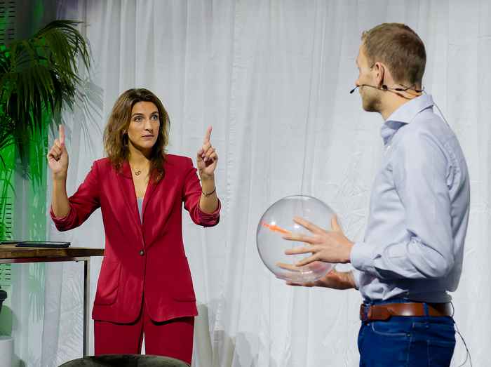 Ook in het algemene programma van de Universiteitsdag kwam ‘vertrouwen’ telkens terug, zo merkte columniste, schrijfster en publiciste Aaf Brandt Corstius al op tijdens haar inleiding. Hoogleraar Marketing Willemijn van Dolen ging tijdens haar keynote in op wat mensen tegenhoudt om duurzame keuzes te maken. ‘Consumenten worden sceptisch wanneer je ze gemengde signalen geeft. Ze horen bijvoorbeeld dat ze met de trein moeten reizen in plaats van met het vliegtuig, maar het vliegtuig is wél veel goedkoper.’ Volgens Van Dolen wordt zo verwarring geschept en neemt het vertrouwen van consumenten af.