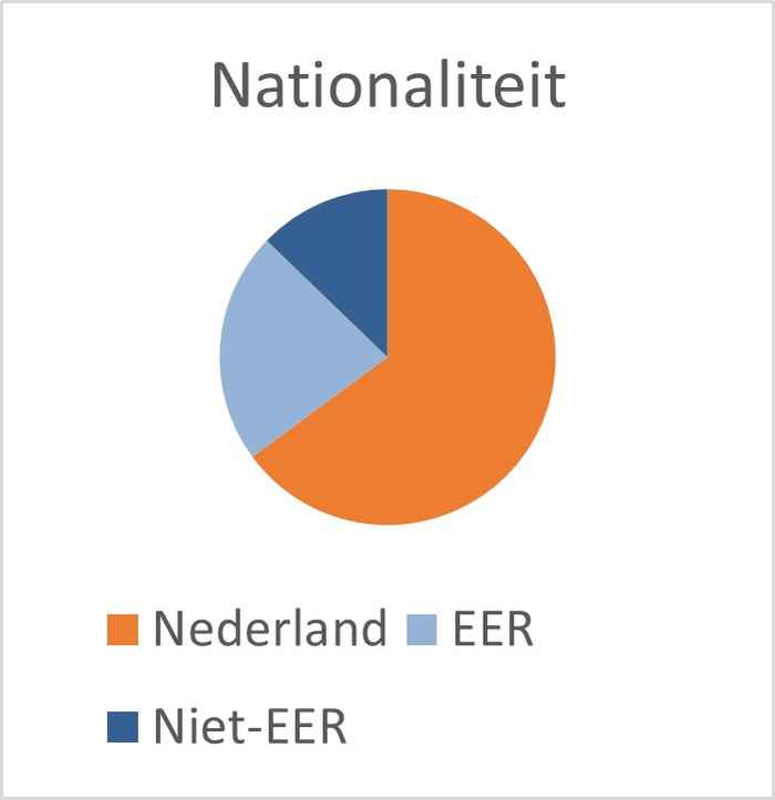 De instroom van nieuwe bachelorstudenten met de Nederlandse nationaliteit neemt af bij alle vijf de faculteiten, het sterkst bij de FEB: van 648 naar 594 (-8,3%). Bij de FMG is juist een opvallende daling te zien van het aantal nieuwe bachelorstudenten uit de EER: van 947 naar 686 (-27,6%). Kijkend naar de bachelorinstroom uit niet-EER-landen dan valt opnieuw de FEB op: de niet-EER-instroom neemt toe met +29,6%, van 476 naar 617.