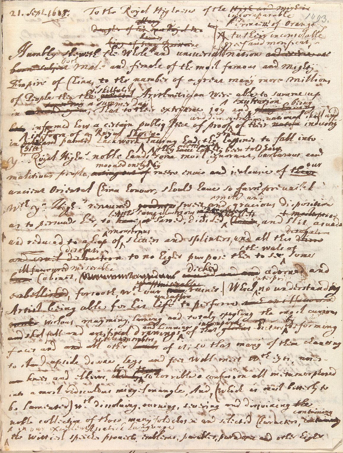 In brieven en gedichten die Huygens vervolgens aan Mary schrijft probeert hij de prinses te overtuigen het scherm niet te demonteren. Het demonteren van lakschermen gebeurde in die tijd vaker om de panelen te gebruiken voor het decoreren van muren van luxueuze kamers. Huygens wil dit voorkomen door de prinses meer informatie te geven over de Chinese cultuur. Hieruit blijkt dat de schrijver de Chinese cultuur bewondert en vindt dat haar kunstwerken met respect behandeld moet worden. Mary was het niet met hem eens.