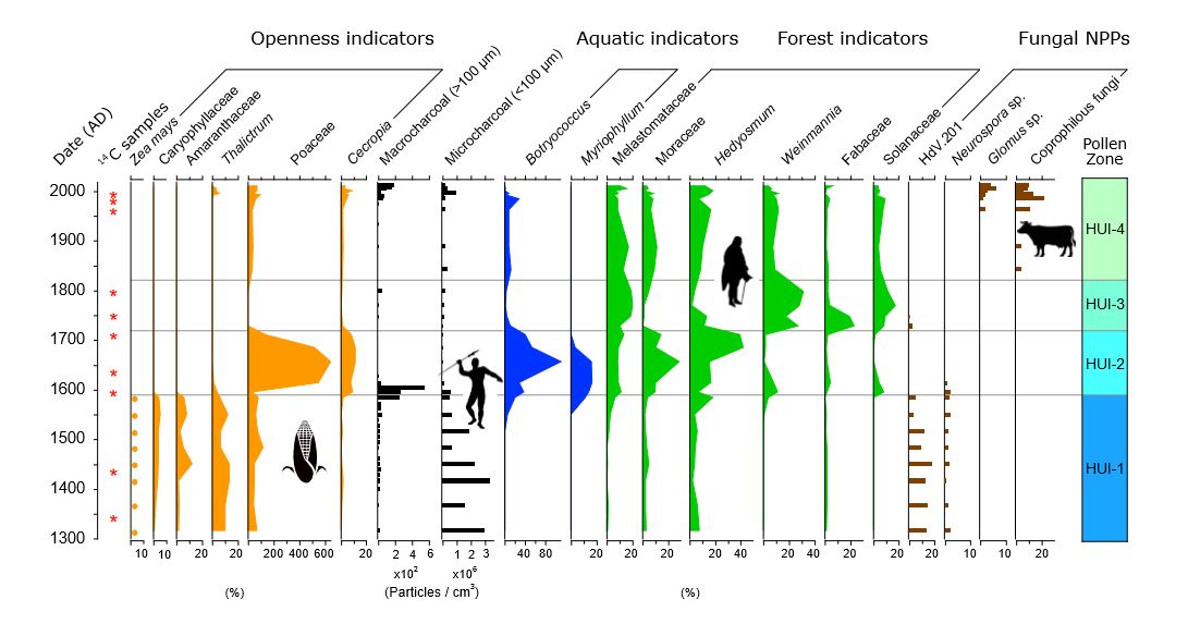 Met behulp van een drijvend platform haalden de onderzoekers sedimenten uit een meer en dateerden deze met behulp van koolstofdatering om de laatste 1.000 jaar in kaart te brengen. Met pollen, schimmelsporen en koolstof die geconserveerd waren in het sediment, reconstrueerden zij het historische landschap, en vergeleken het met het huidige landschap en de periode voordat de eerste mensen arriveerden in Zuid-Amerika.