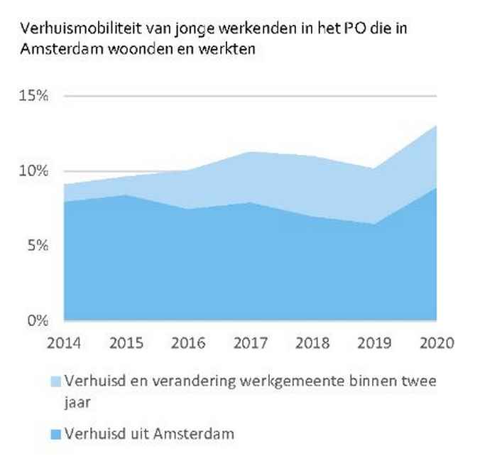 De Amsterdamse woningmarkt is de afgelopen jaren minder toegankelijk geworden voor huishoudens met een lager- of middeninkomen concluderen de onderzoekers. Ook leraren in het basisonderwijs kunnen hierdoor steeds moeilijker passende woonruimte vinden. De cijfers laten dan ook zien dat het aantal leraren dat in Amsterdam woont en werkt de laatste jaren afneemt, van 57% in 2012 naar 51% in 2020, en het aandeel dat jaarlijks de stad verlaat toeneemt, van 8% in 2014 naar 13% in 2020. En ongeveer een derde van de leraren die de Amsterdamse woningmarkt verlaat, gaat ook vaak elders werken. ‘Daar zijn vooral de Amsterdamse kinderen de dupe van’, stelt Majoor.