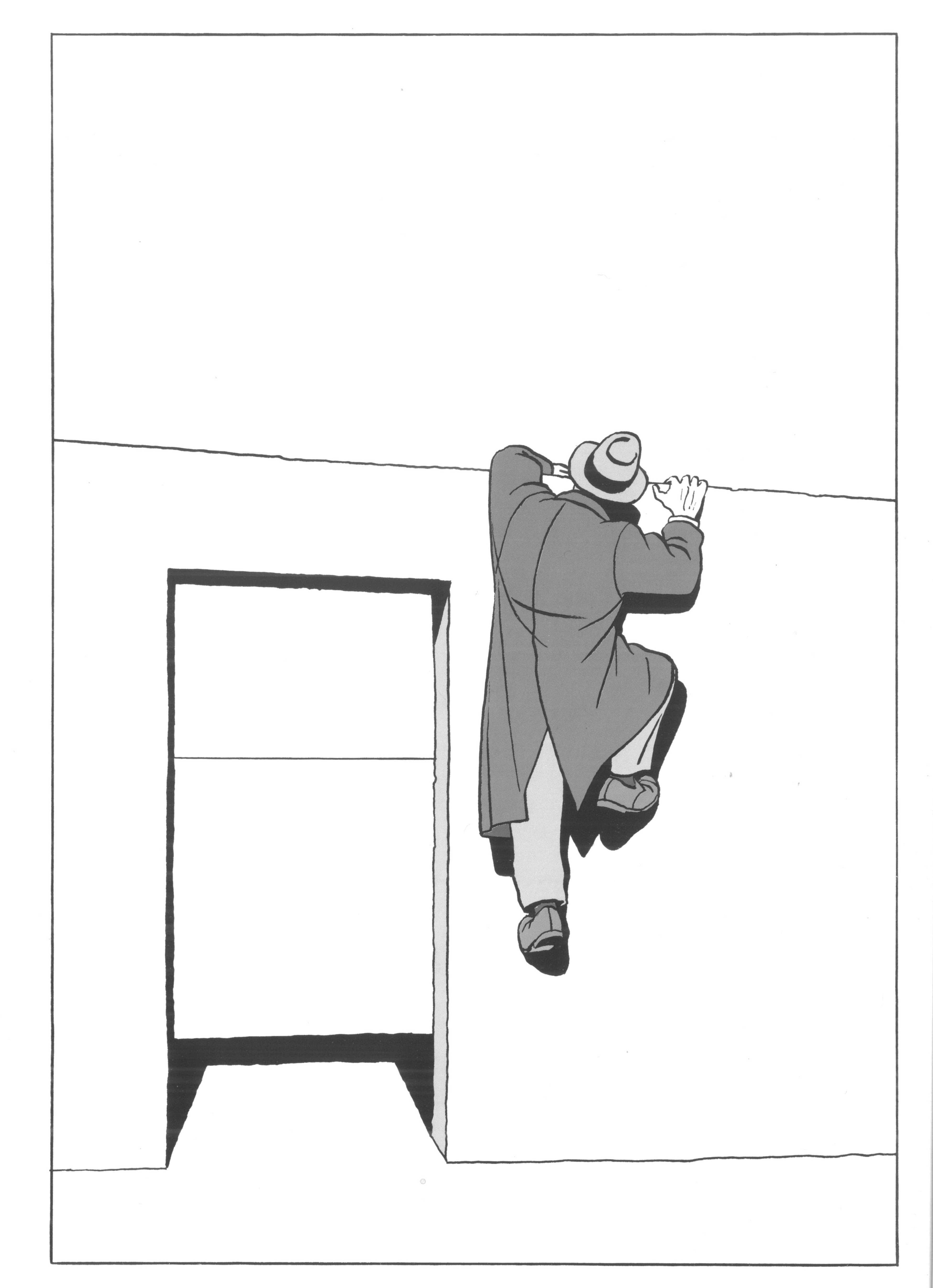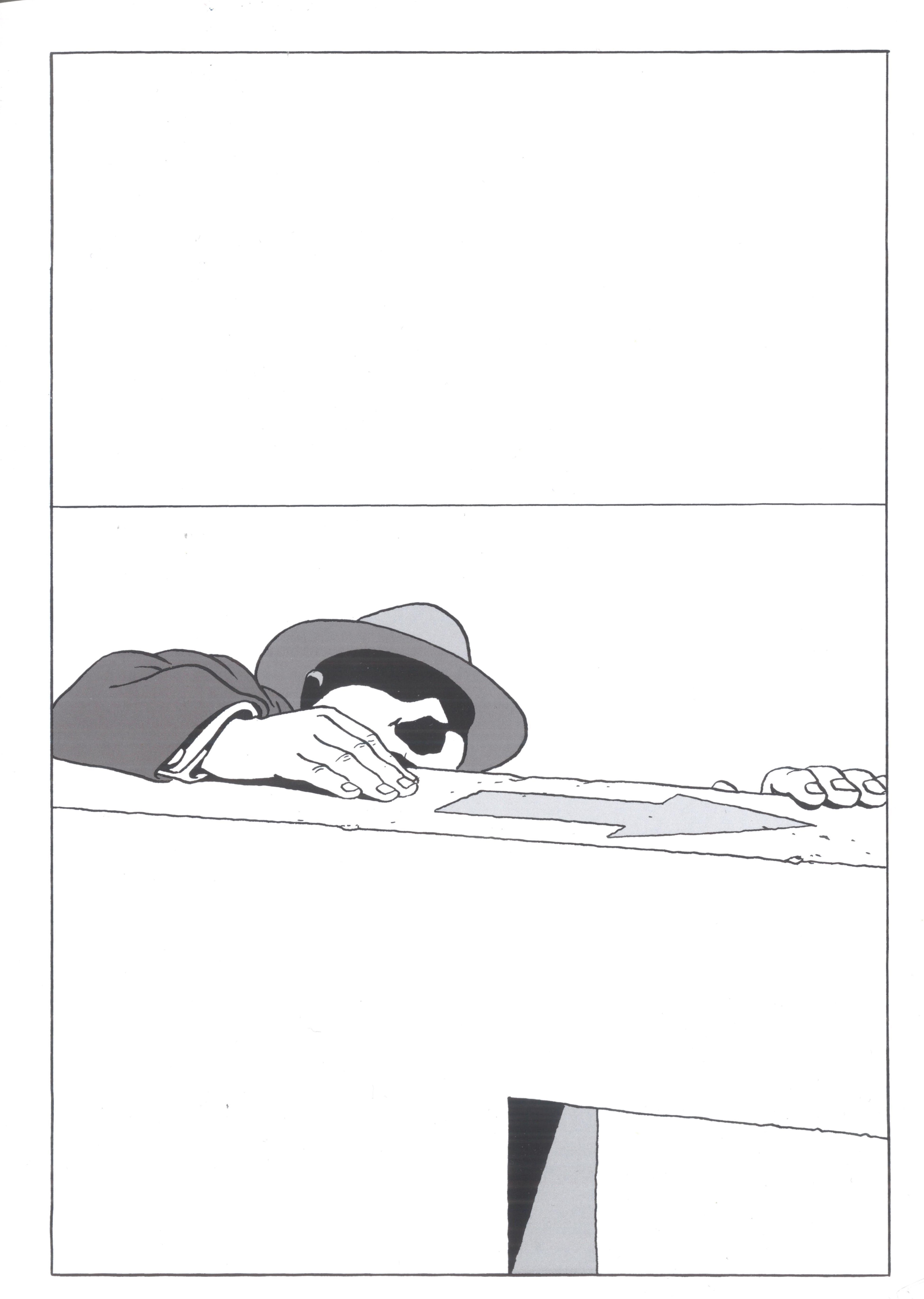 En minstens zo belangrijk: de lezer moet zelf invullen wat er gebeurt in de ruimte tussen twee tekeningen, de zogeheten gutter. ‘In Sens gaat dat vaak heel subtiel. Kijk maar goed: er verandert in de beelden boven meer dan alleen het camerastandpunt dat 180 graden draait.’