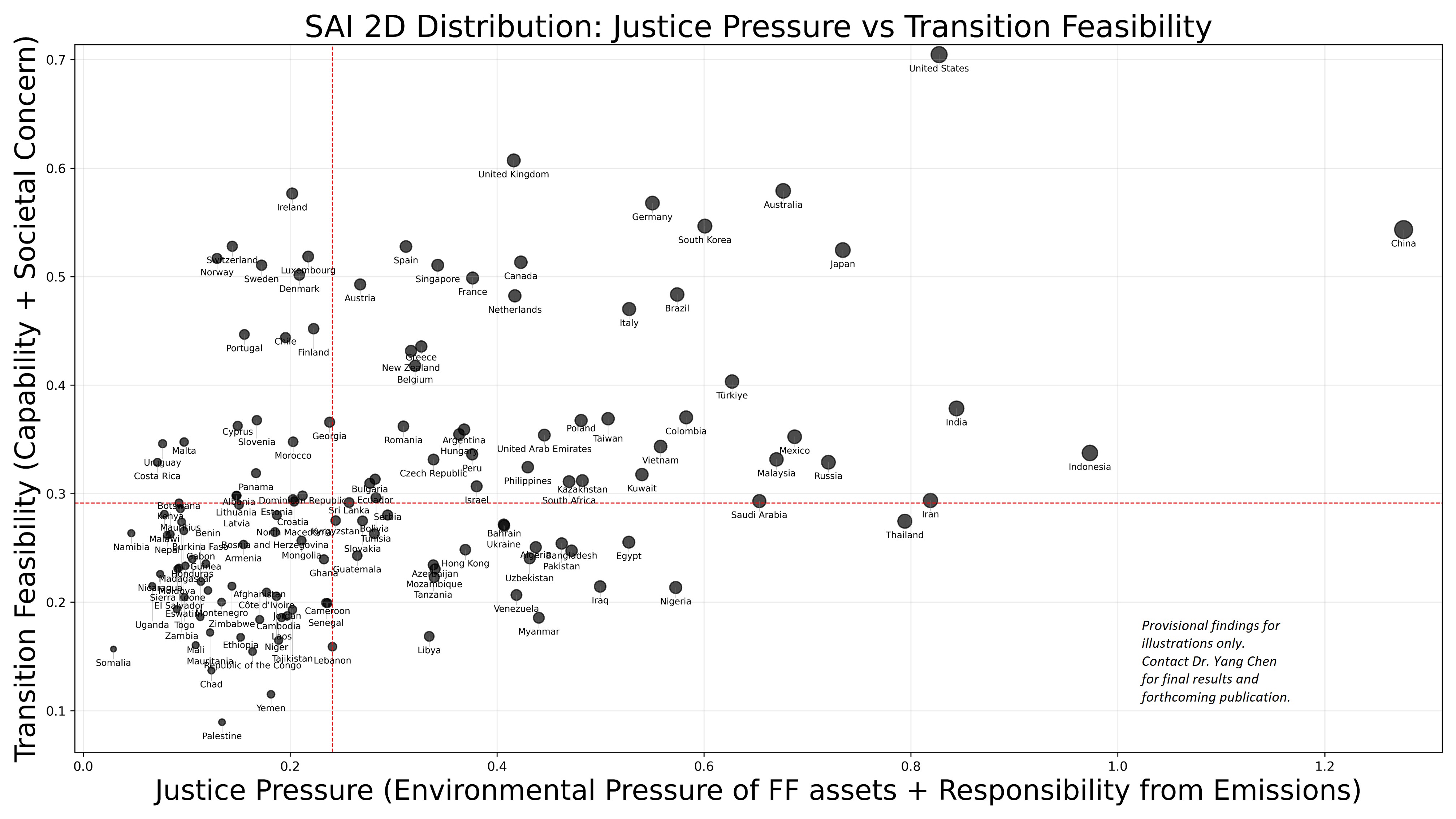 De Fossiele Risico-Index legt de risico’s van ‘gestrande activa’ en hulpbronnen voor landen en regio’s bloot. ‘Stel dat een land grote gasvelden heeft waarvoor de infrastructuur al is aangelegd, maar waar door strengere klimaatregels in de toekomst veel minder vraag naar gas zal zijn’, legt Gupta uit. ‘De pijpleidingen, installaties en zelfs het gas in de grond verliezen dan hun economische waarde. De Fossiele Risico-index laat zien hoe groot dat waardeverlies is en welke sectoren en regio’s hierdoor worden geraakt. Dit helpt om te bepalen hoe de schade eerlijk kan worden verdeeld.’