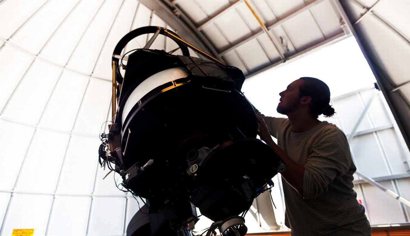 The highest of the two is the star dome. It houses a 51cm mirror telescope equipped with an extremely light-sensitive camera. The equipment is adapted to run a fully automated observation programme. This is a large benefit for students as they no longer have to be present all the time.