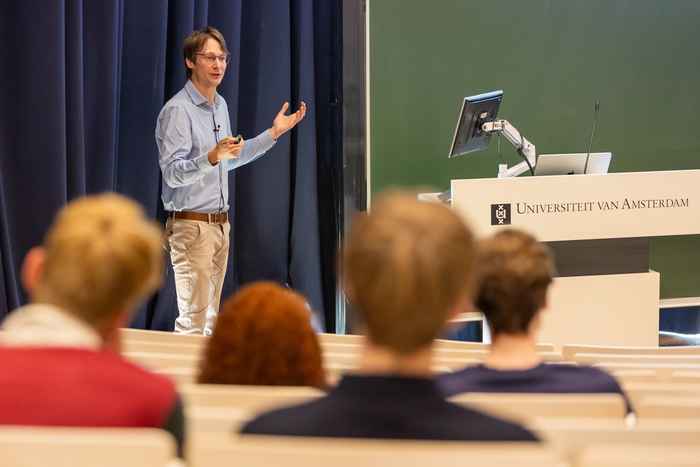 In addition to my role on the Works Council, Njal teaches courses like 'Philosophy of Science' ("Wetenschapsfilosofie"), 'Reflection on the Digital Society' ("Reflectie op de digitale samenleving"), and 'Reflection on Mathematics' ("Reflectie op wiskunde"). He is also occupied with collaborative skills for interdisciplinary student teams of different degree programmes. Students often have to work in teams, while they aren’t really taught to do that. Because exposure to collaboration without proper training doesn’t automatically lead to any desired results, he has been working for years on a toolbox and student manuals for interdisciplinary collaboration. His goal is to improve students’ teamworking skills in a structured fashion.
