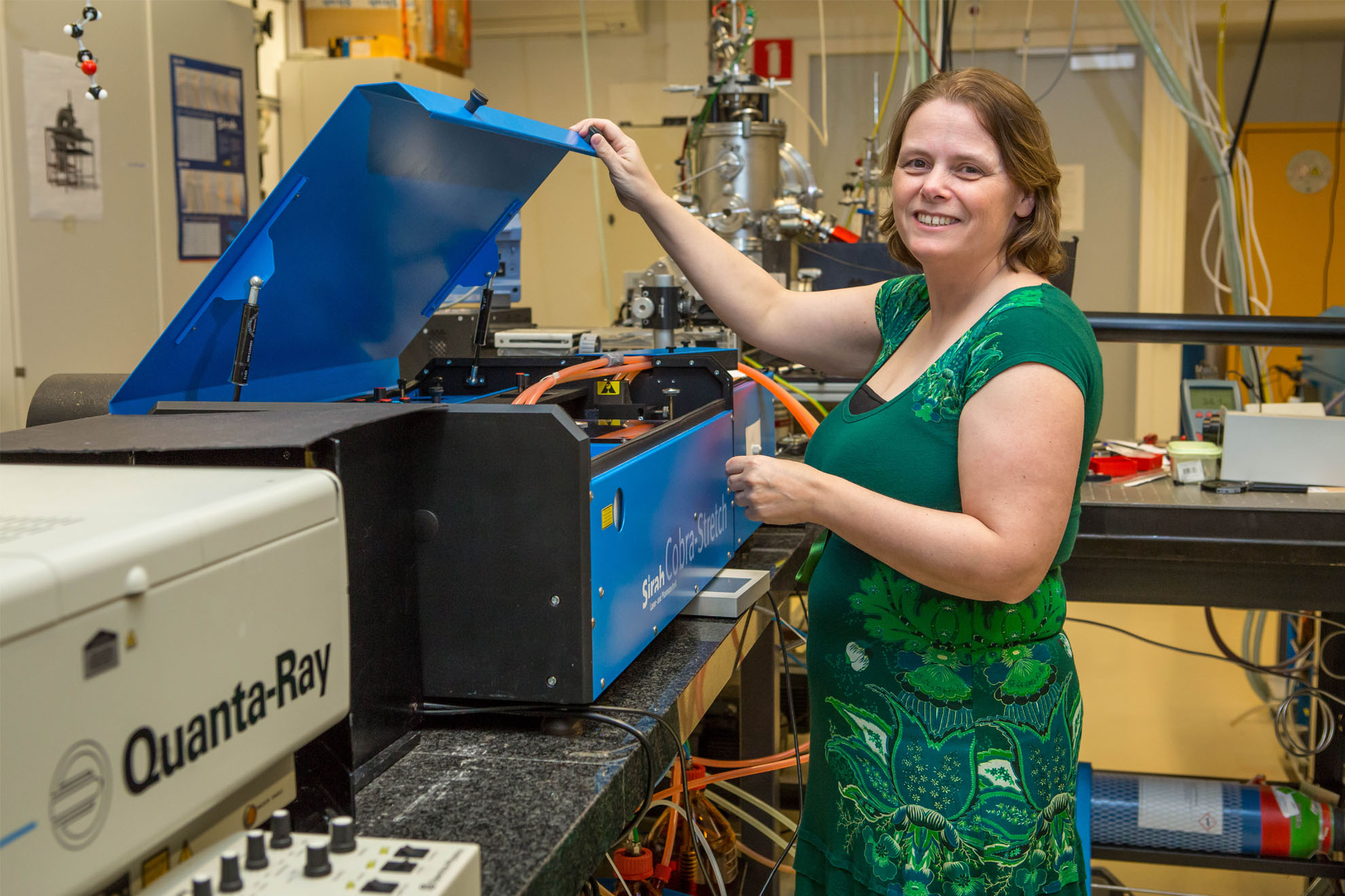For her postdoc Petrignani and her husband moved to Heidelberg, Germany. At the Max Planck Institute she performed experiments involving quantum states of very cold small molecules. ‘Among other techniques, this involved ion storage rings and advanced action spectroscopy, laser spectroscopy. We again tried to push the limits of what’s possible. We managed to get very weak transitions in the state of the molecules, and we designed a very sensitive method and custom equipment to achieve this.’