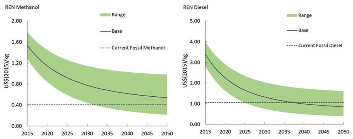 Following an optimistic scenario the three researchers conclude that all four renewable fuels can out-compete their fossil-based counterparts between 2025 and 2050.