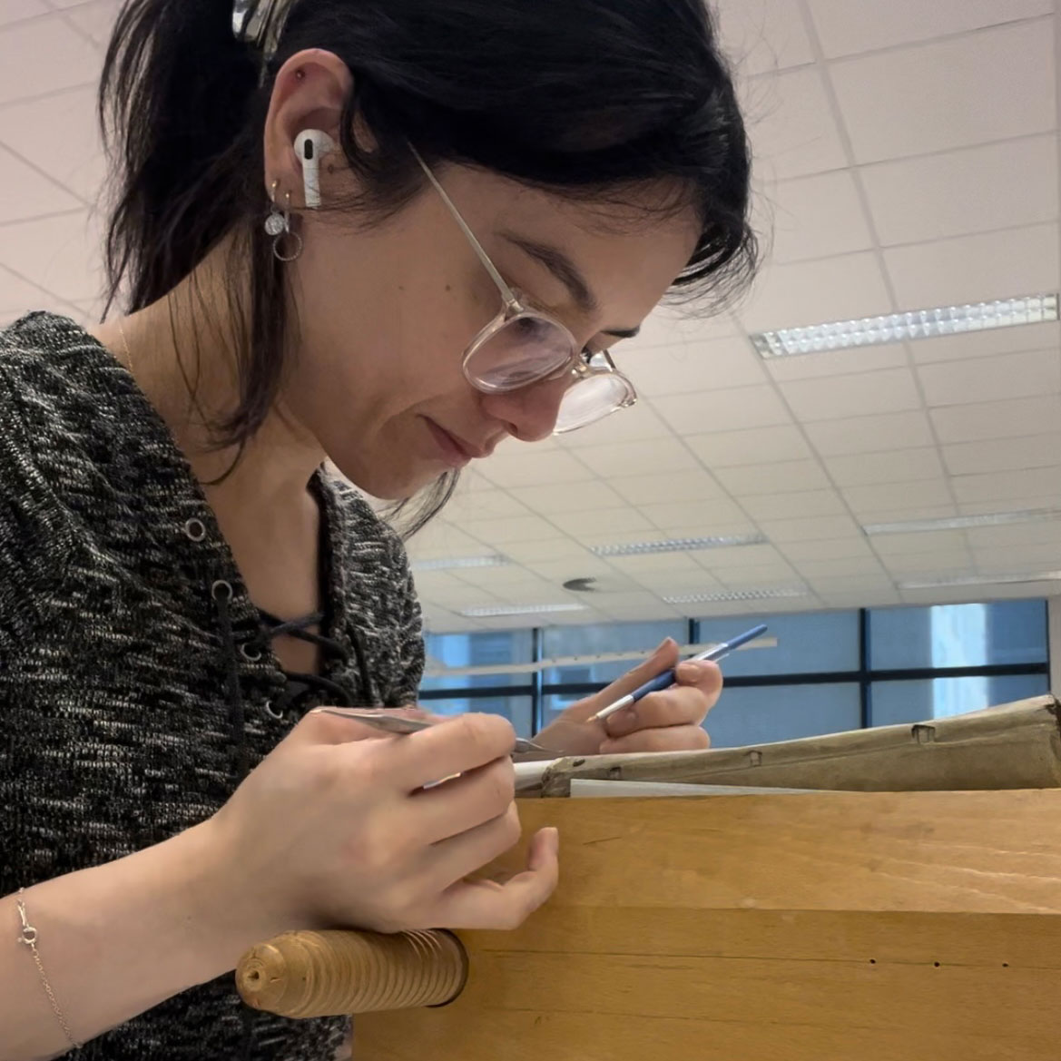 Having obtained her Master’s diploma in Book and Paper Conservation in 2022 at the University of Amsterdam (UvA), she is now pursuing a post-masters degree as part of the Advanced Professional Programme of the Conservation and Restoration of Cultural Heritage at the UvA.