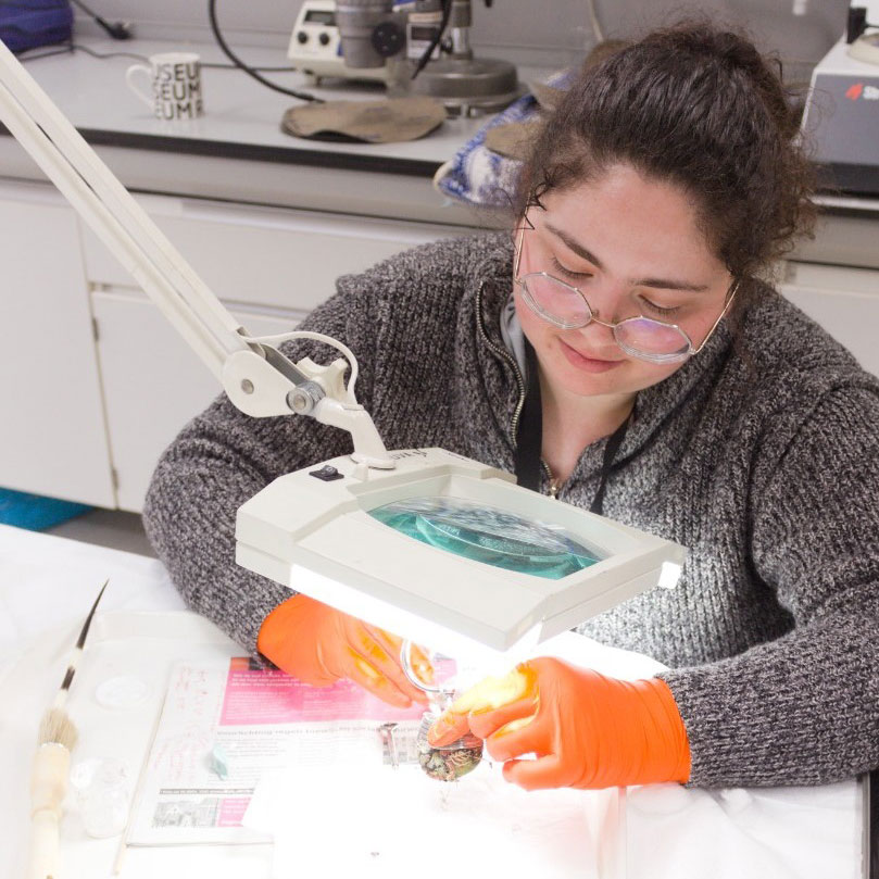 Circée is currently studying textile conservation at the Universiteit van Amsterdam. Her previous education includes bachelors in conservation studies (focusing on easel paintings and frescoes), and art history. Working with the canvas in paintings in addition to a personal interest in textiles inspired her to pursue textile conservation for graduate education.