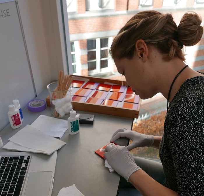 Voor onderzoek naar het uitvoeren van polijstbehandelingen bij het restaureren van hoogglans sculpturen spraken we met kunstenaar Thomas Rentmeister. De informatie die hij deelde over zijn gebruikte materialen en werkwijze, evenals zijn visie op schade en restauratie, waren van grote waarde voor het onderzoeken en afwegen van een mogelijke behandelmethode voor sculptuurrestauratie.