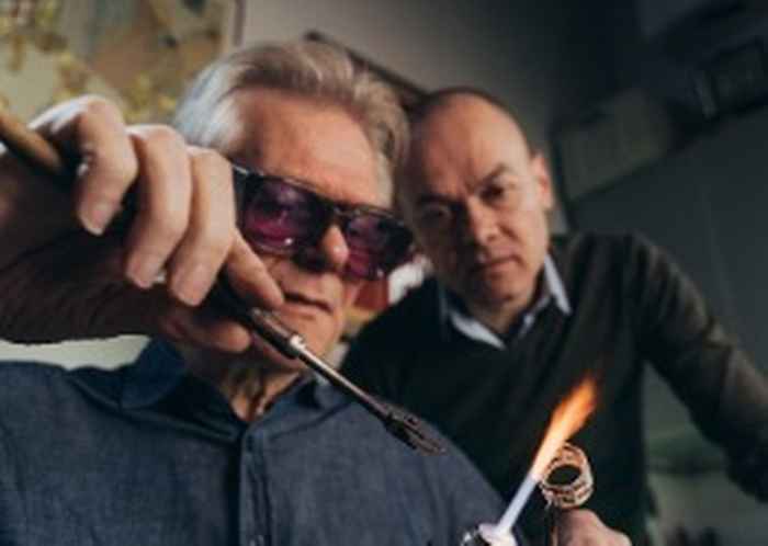 Sieraadontwerper Evert Nijland vertelt over glas, zijn fascinatie voor het materiaal, de uitdaging om ermee te werken en de dualiteit die het in zich draagt. Zesentwintig keer valt het woord “spannend” en dat is ook precies wat hij zoekt in zijn ontwerpen en materiaalcombinaties. Daar gaat een lang proces van ontwikkeling en trial en error aan vooraf in een intensieve samenwerking met verschillende vakspecialisten, onder wie Edwin Dieperink, waardoor bijzondere nieuwe materiaaltoepassingen ontstaan. “Pisgeel werd het glas! Ik dacht: wat krijgen we nu?”