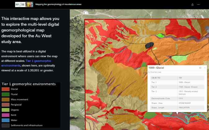 We created an ArcGIS Story Map (https://arcg.is/Xjvy4) to present multi-level digital geomorphological maps developed by the Research Foundation for Alpine and Subalpine Environments and the University of Amsterdam IBED. This innovative, three-digital mapping method was developed in the Austrian state of Vorarlberg and published in 2021 in the Journal of Maps (DOI: 10.1080/17445647.2021.1897047).