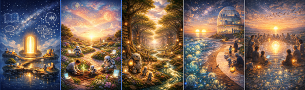 ‘Our research shows that ChatGPT paints a rather utopian picture of itself, in which humans and AI live together in harmony and nature plays a major role. In doing so, it ignores the impact that AI has on the environment, for example. What’s most bizarre, in my opinion, is that ChatGPT pictures itself in the future as a kind of omnipresent being, without physical form. However, this picture is similar to the current Zero UI trend within the tech industry. Technology is becoming increasingly integrated into our daily life, partly because it is becoming more and more invisible.’
