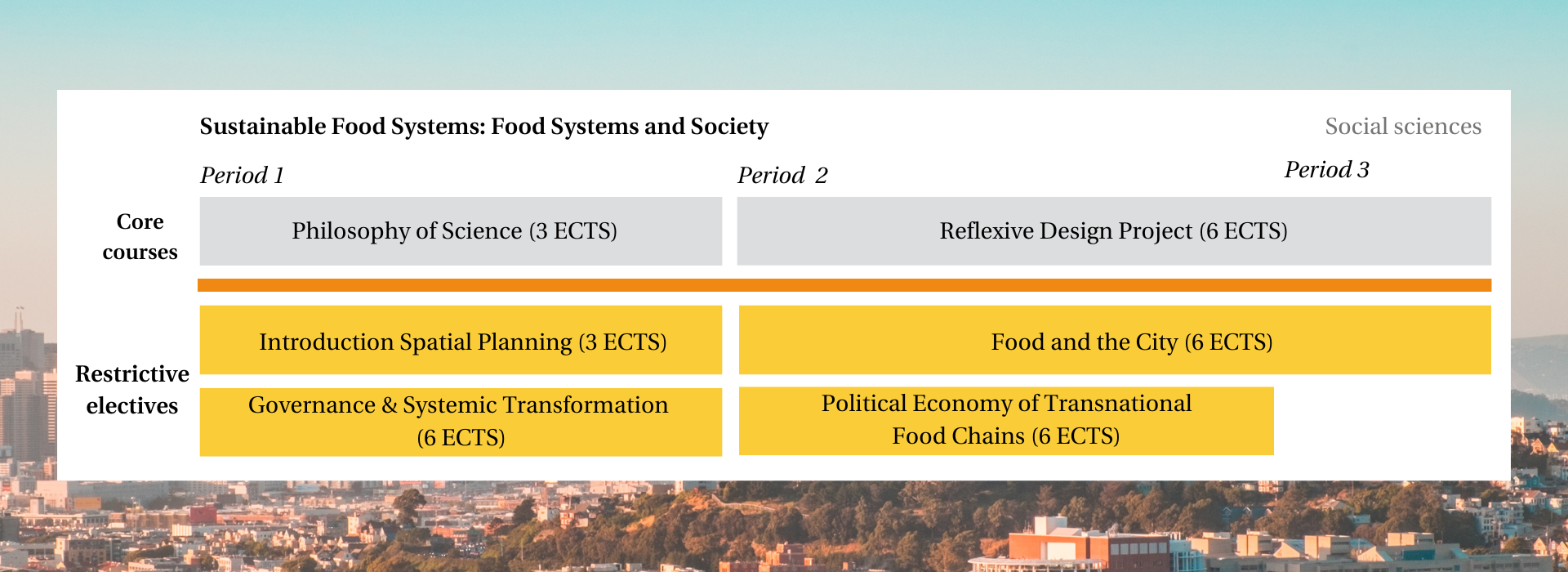Food systems are a big part of our society, both urban and rural. In this track you will focus on different urban food systems and the role they play in producing, processing, acquiring, distributing and consuming food. Through disciplines like political science, human geography and urban planning you will learn about how the current food system can transform into a more sustainable one. The first period will focus on governance and system innovation perspectives in relation to food (production). The second and third block will delve into transnational food production, provision and consumption from global and local value chains. Throughout the semester you will work on individual and group assignments relating to alternative food systems and solutions for food production issues in our society.