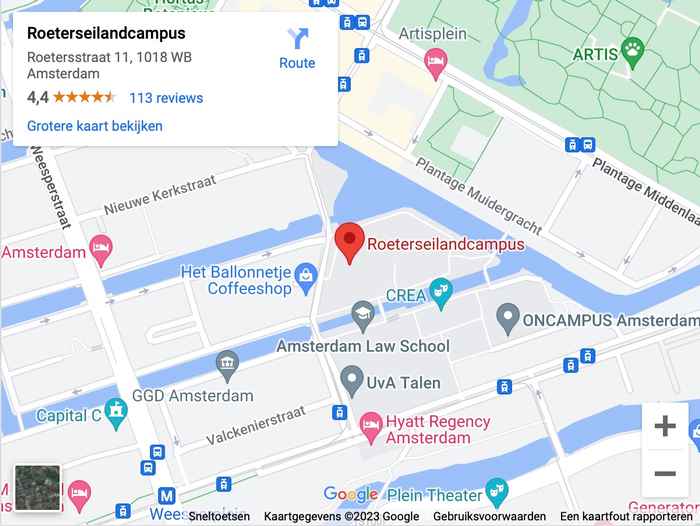 The city of Amsterdam is an obvious and ideal environment for the University of Amsterdam: ‘the city is our campus’. The Amsterdam Law School is located at the Roeterseiland Campus, in the Plantage District of the city centre.