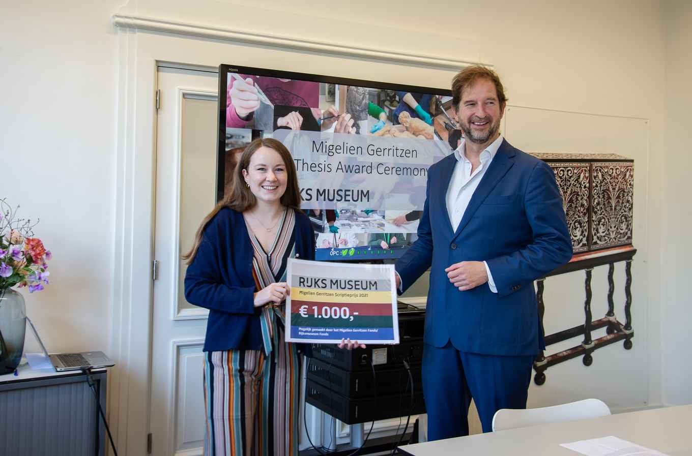 Since 2013, the Rijksmuseum awards the Migelien Gerritzen Thesis Award to a Master’s student in Conservation and Restoration at the University of Amsterdam. The award consists of a cheque worth € 1.000, half of which is awarded to the recipient directly, while the other half can be redeemed after publication of the research in a professional journal for research in conservation and restoration.