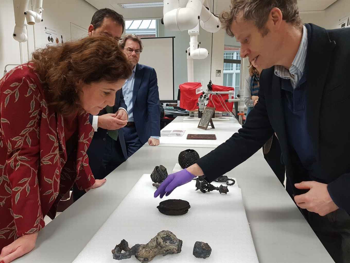 Minister Van Engelshoven kwam op uitnodiging van de gedeputeerde Cultuur van de Provincie Noord-Holland, Jack van der Hoek: ‘Ik ben blij dat we een aantal prachtige vondsten hebben kunnen laten zien aan de minister. De voorwerpen, die bijna vierhonderd jaar op de bodem van de Waddenzee hebben gelegen, vertellen veel over onze maritieme geschiedenis. Voor de Nederlandse kust liggen honderden wrakken die mogelijk ook waardevolle lading bevatten. Deze wrakken worden bedreigd door natuurlijke processen, onder andere door paalworm, en dreigen voorgoed verloren te gaan. Samen met de andere kustprovincies heeft de provincie Noord-Holland het Rijk opgeroepen om beter beleid te maken om deze wrakken te beschermen. Inmiddels is het onderwerp besproken in de Tweede Kamer en zetten we goede stappen in de richting van een beter beheer.’