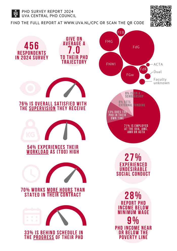 De resultaten van de PhD-enquête zijn samengevat in een PhD-survey-rapport, dat openbaar beschikbaar is op de website van de UvA. Het doel van dit rapport is om ervaringen van promovendi van alle faculteiten te monitoren, en verbeterpunten te identificeren.
