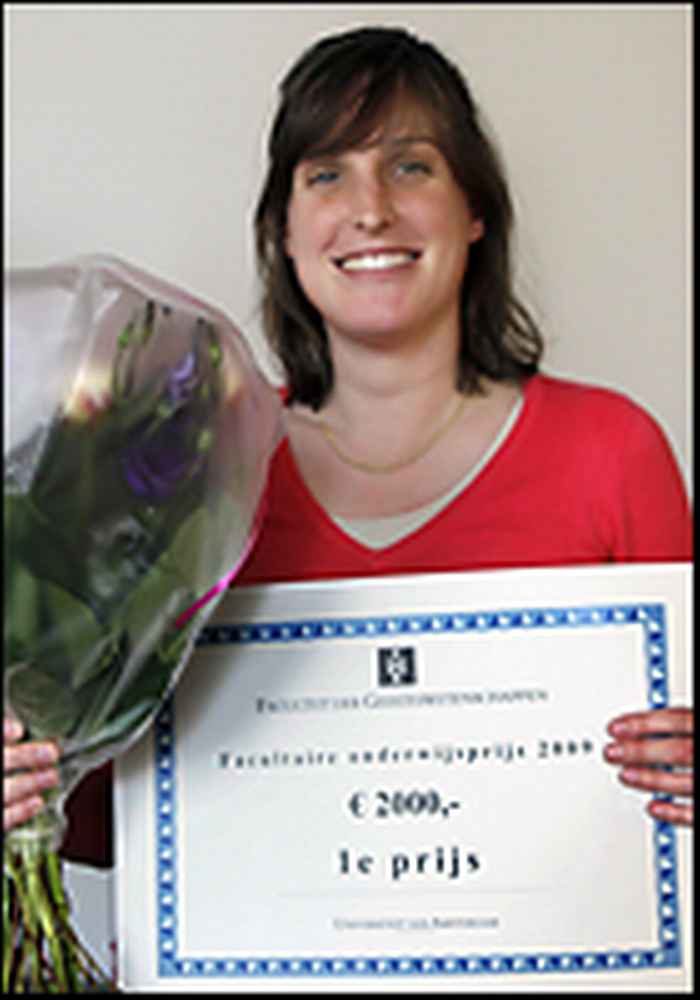 Mieke Taat ontving voor haar vak Geschiedenis van de literatuurbeschouwing de derde prijs (€ 250).