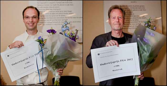 De Onderwijsprijs FGw 2012 werd op 20 juni toegekend aan het bachelorvak Cultuurkunde Spaans van Antonio Sánchez Jiménez en aan het mastervak Rationality, Cognition and Reasoning van Michiel van Lambalgen. De twee winnaars ontvingen uit handen van decaan Frank van Vree een cheque ter waarde van €1500,-