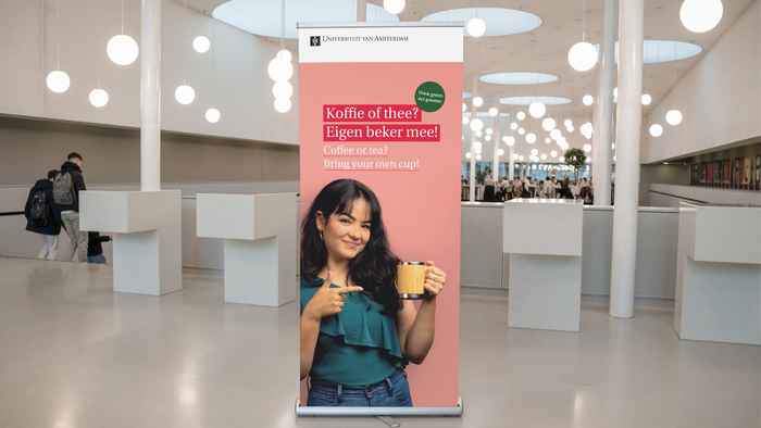 In social media uitingen gebruiken we de hashtag #thinkgreenactgreener om aan te geven dat de content onderdeel is van de duurzaamheidsinitiatieven van de UvA. Je kunt de hashtag gebruiken voor zowel een story als een post.