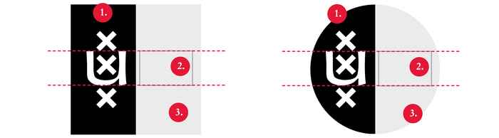 De avatar moet universeel te gebruiken zijn op alle online platformen zoals Facebook, Twitter, Instagram, YouTube. Er is daarom rekening gehouden met zowel de vierkante als ronde vorm van de avatar. Het UvA-logo is voor de herkenbaarheid aan de linkerkant geplaatst. De rechterkant is in te vullen met een achtergrondkleur uit het kleurenschema en één of meer letters voor eigen profilering. Hoe meer letters, hoe kleiner de tekst wordt vanwege de beperkte ruimte binnen een avatar.