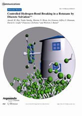 Our Communication " Controlled hydrogen-bond breaking ina rotaxane by discrete solvation " has been published in Angewandte Chemie Int. Ed. 49 , 3896-3900 (2010). It has been selected as one of the highlights with an artful frontispiece made by one of the authors, Dr. Nadja Saendig. This article, in which we show how to release the macrocycle from the thread by solvating a rotaxane with one solvent molecule at a time, has attracted quite some attention. Look at the YouTube link to see a movie of what is happening!