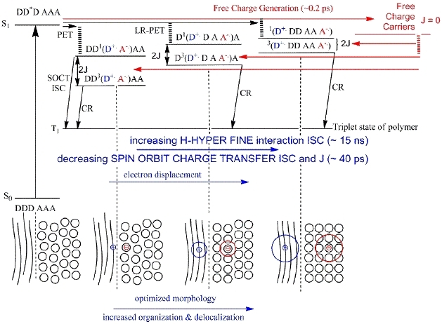 The Master-Thesis work of Hung-Cheng Chen has now been published. With femtosecond transient absorption of layers on quartz we saw that charges form and than create locally excited triplet states on the polymer.