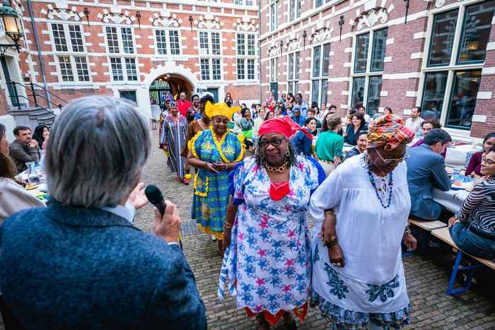 De Keti Koti dialoogtafel is een traditie waarbij we met elkaar stilstaan bij de omgang met de gevolgen van het Nederlandse koloniale en slavernijverleden. Dit doen we door met elkaar persoonlijke ervaringen, emoties en inzichten te delen in relatie tot het dialoogthema dat specifiek voor deze bijeenkomst bepaald is: “Seeing and Being Seen: Who Cares?”