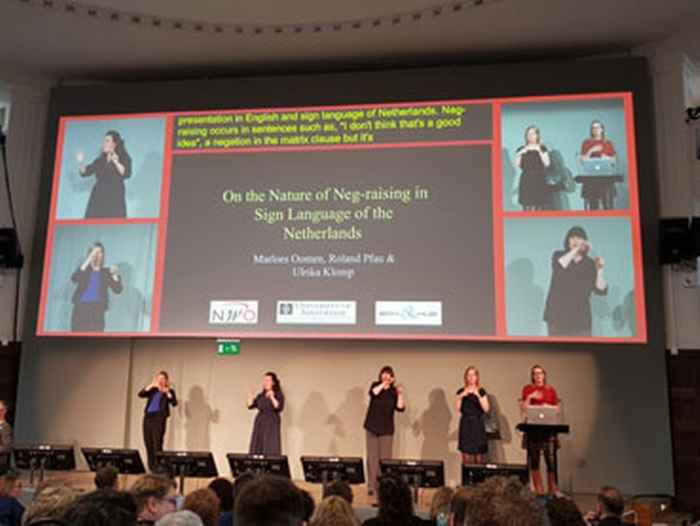 Na het eerste uitgebreide corpusonderzoek van Marloes Oomen en Roland Pfau naar standard negation in NGT, hebben Ulrika, Marloes en Roland de resultaten nu uitgebreid met onderzoek naar verschillende onderwerpen rondom negatie. Ze hebben hierover gepresenteerd op Syntax of the World’s Languages 8 in Parijs, Sign-Nonmanuals 2 in Graz, en Theoretical Issues in Sign Language Research 13 in Hamburg. Ook heeft het onderzoek geresulteerd in een hoofdstuk over NGT in een (nog te verschijnen) typologisch handboek over ontkenning.