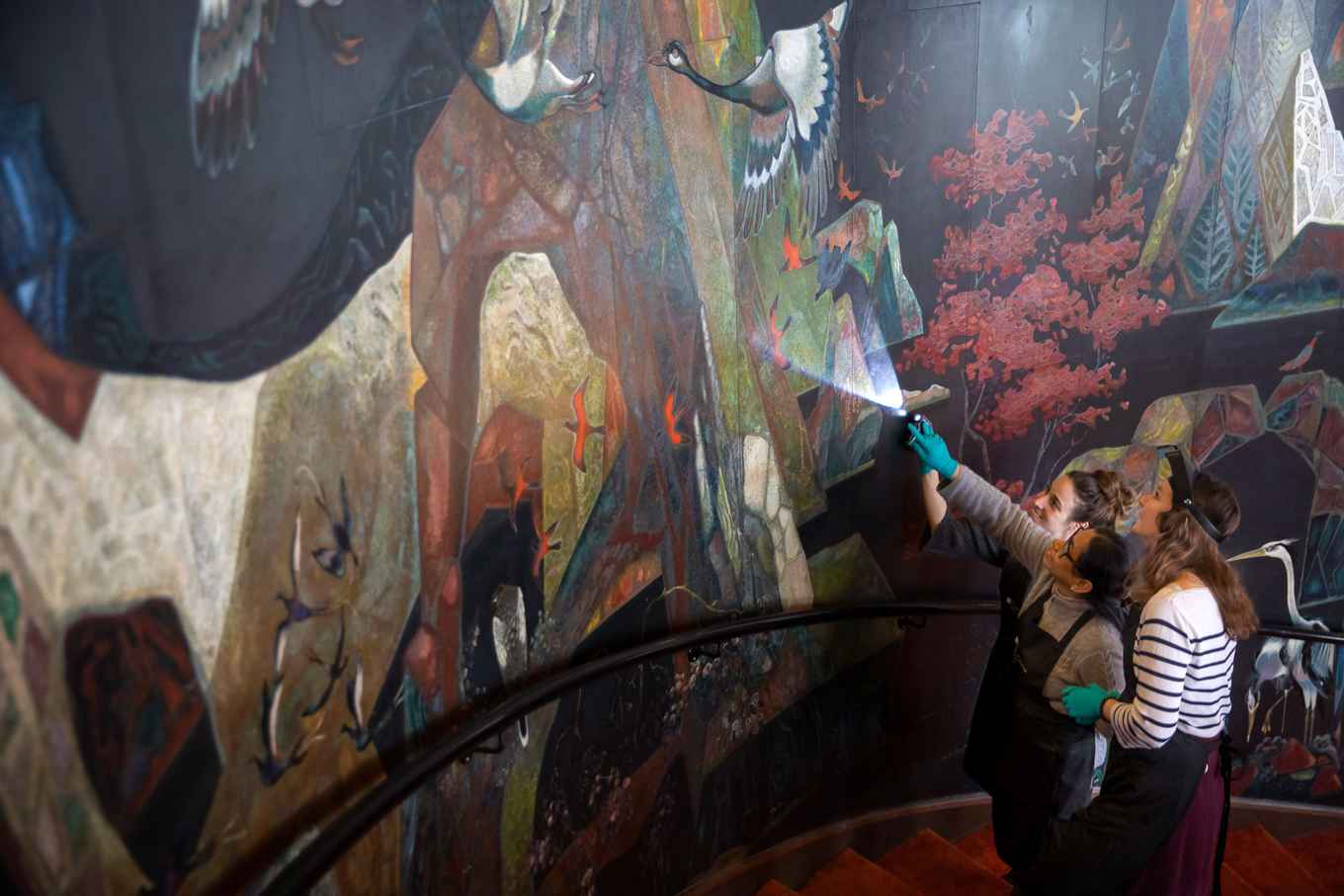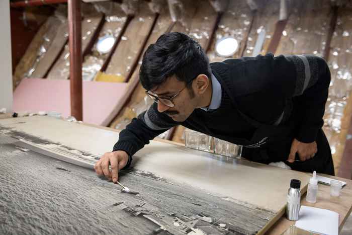 Hoe zorg je er in zo’n omgeving voor dat kunst en interieur toch goed bewaard blijven? Over dat onderwerp organiseerde de opleiding afgelopen januari een intensieve workshop. In zes dagen tijd leerden de studenten van Conservering en restauratie onder andere hoe je schade aan kunstwerken kunt herkennen en monitoren. Ook deden ze ervaring op in het uitvoeren van ‘eerste hulp’ bij bijvoorbeeld beschadigingen en vervuiling.