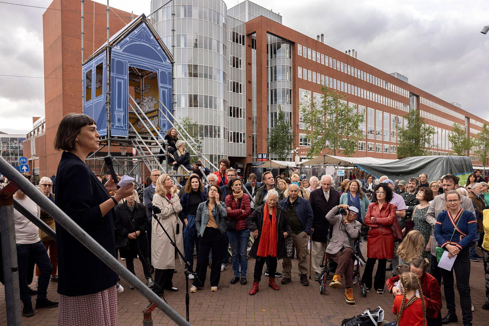 Decaan Marieke de Goede spreekt bij de opening van het Loofhuttenfeest (foto Bob Bronshoff)