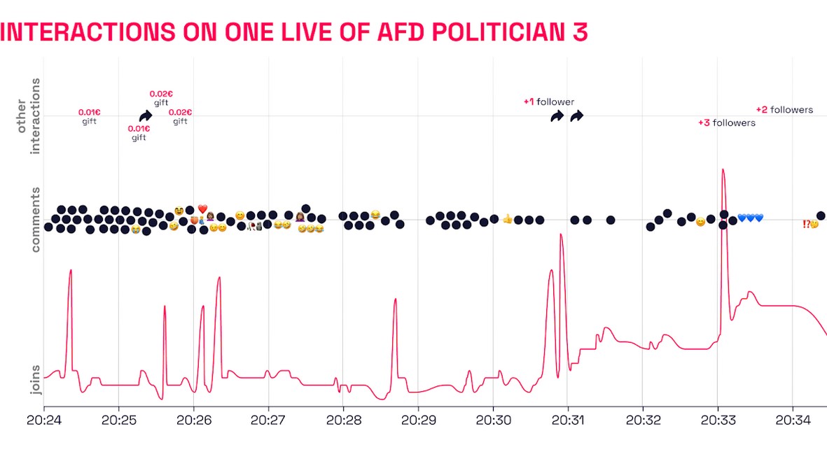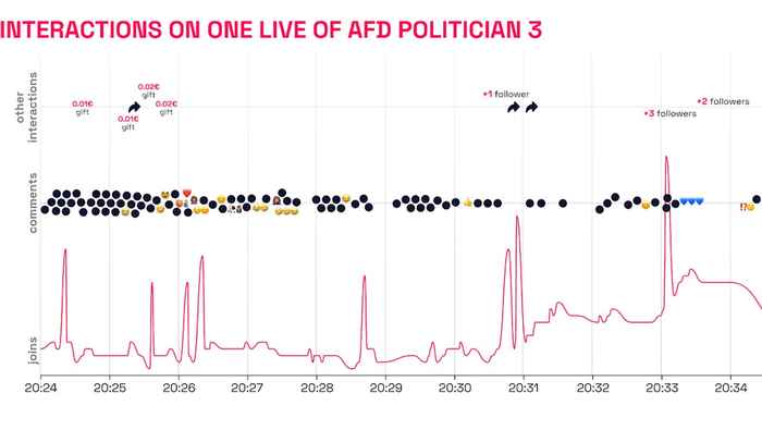 Dat TikTok extreemrechtse content faciliteert, bleek toen de onderzoekers een avond de streams van 300 extreemrechtse TikTok-gebruikers observeerden. Tijdens de streams ontstonden een aantal keer pieken met nieuwe kijkers. Dit duidt op een verhoogde algoritmische zichtbaarheid. 'Het platform beveelt deze streams vermoedelijk ook actief aan via de For You page', zegt onderzoeker Pieter van Boheemen. Ook vermoeden de onderzoekers dat de extreemrechtse streams bevoordeeld worden doordat volgers via een autoclicker automatisch hartjes geven - wat telt als engagement en interactie.