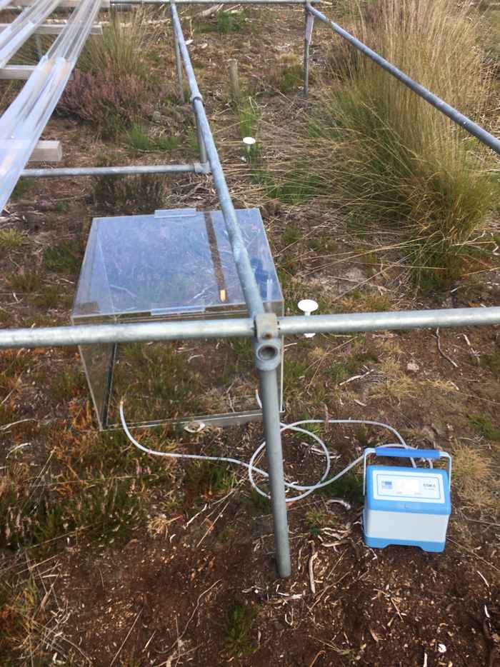 Om de netto CO2 opname van de heide te meten, gebruikten de biologen dit soort transparante luchtkamers. Foto: UvA/IBED