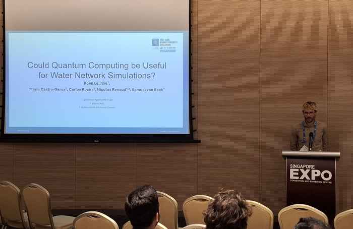 Leijnse presenteerde het project met Vitens in juni tijdens het 41ste IAHR World Congress in Singapore. Op deze manier kon hij de mogelijkheden van quantumsoftware demonstreren en tegelijkertijd inzicht krijgen in ontwikkelingen van partners binnen het veld. Potentiële nieuwe toepassingen voor quantumsoftware zijn onder andere overstromingsberekeningen, grondwaterstrooming simulaties, waterfiltratie en sedimentatie, verkenning van nieuwe materialen (in contact met water) en rDNA classificatie met quantum machine learning.