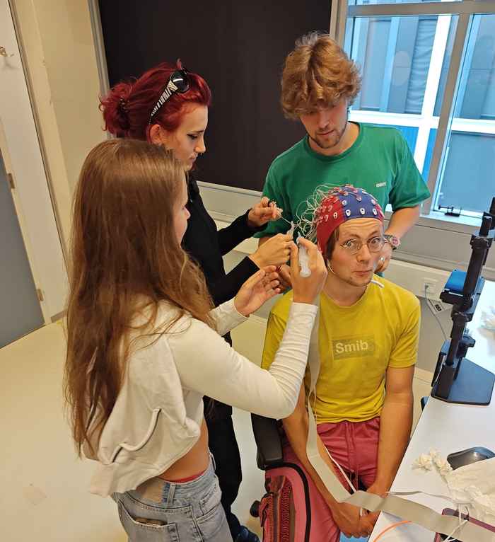 Het Human CogNeuro Lab is ontworpen om studenten te voorzien van praktische ervaring met moderne onderzoeksmethoden in de cognitieve neurowetenschappen. Het lab beschikt over geavanceerde apparatuur zoals EEG-systemen, VR-opstellingen, eyetracking technologie en een stereotactische transcraniële magnetische stimulatie (TMS) setup. Deze voorzieningen maken het mogelijk om simultaan EEG, TMS en eyetracking metingen uit te voeren, zelfs tijdens VR-experimenten.