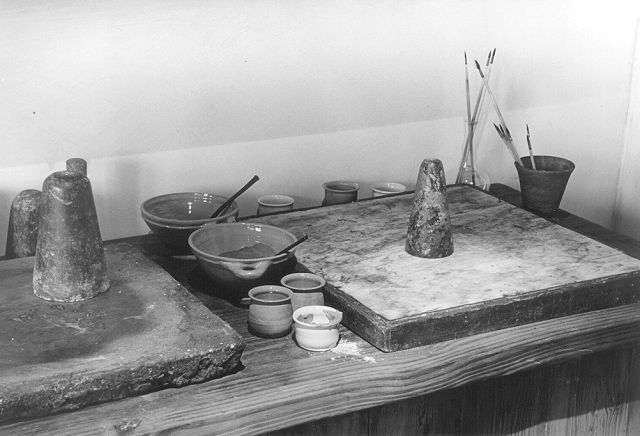 Handling the muller required skill, stamina, an intimate knowledge of the properties of the individual pigments and their response to the oil, and would need to match the effect the painter wished to achieve.