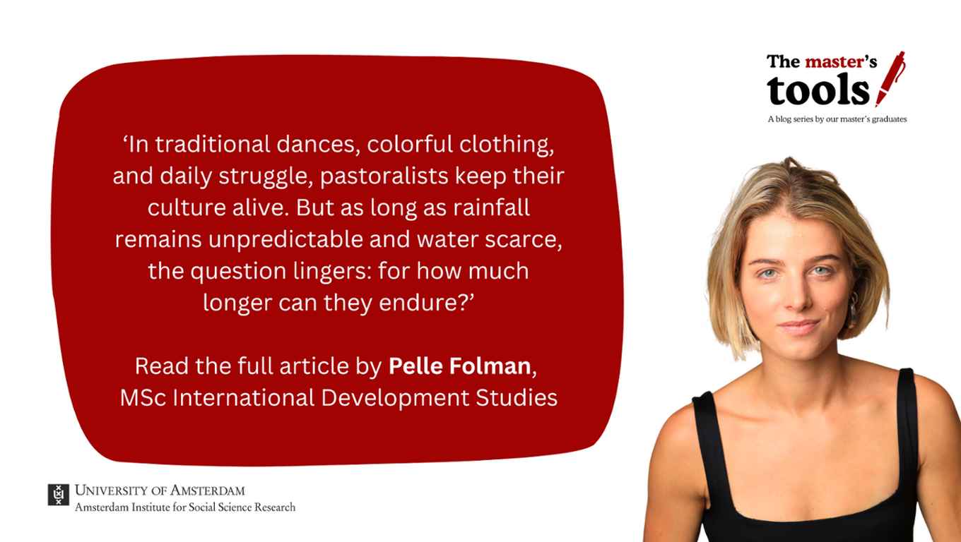 I am a Dutch graduate who recently completed a master’s in International Development Studies at the University of Amsterdam, with a curiosity for people, a commitment to global challenges, and a passion for storytelling. Over the course of two months, I conducted ethnographic research in Kenya on the effects of climate change on pastoralists and farmers, and the extent to which local government policy addresses these challenges. To capture the personal stories of these communities, I not only conducted interviews and focus groups but also used photography to visually document their experiences. I spoke with more than 200 people - ranging from pastoralists and farmers in rural Baringo to local governmental officials - and collaborated with the Kenya Red Cross. My work highlights the burdens that climate change imposes on pastoralists and farmers in Kenya, while simultaneously illuminating their resilience, evident in their daily efforts to sustain their livelihoods and preserve their cultural identity.