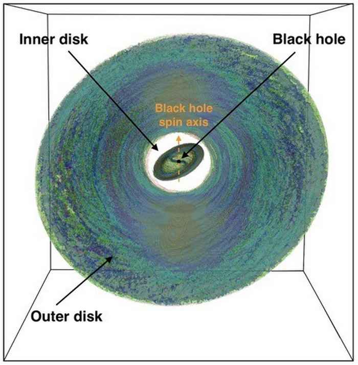 Numerieke simulaties die rekening houden met de effecten van algemene relativiteit en magnetische velden zijn belangrijk voor het modelleren van accretieschijven rond zwarte gaten, en hebben de potentie om de mysteries rond QPO's bloot te leggen. De overgrote meerderheid van deze simulaties heeft tot nu toe accretieschijven gemodelleerd die geometrisch dik zijn en uitgelijnd met de draaiingsas van het zwarte gat. Maar simulaties van dunne, sterk gekantelde accretieschijven zijn buitengewoon moeilijk uit te voeren en vereisen extreme rekenkracht. De geavanceerde simulatie van een zeer dunne accretieschijf die sterk gekanteld is ten opzichte van de draaiingsas van het zwarte gat, behoort tot de grootste astrofysische simulaties die ooit zijn uitgevoerd.