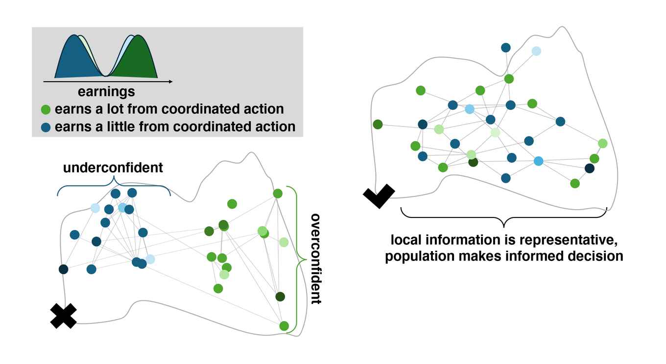 Het is een metafoor voor bijvoorbeeld het aanpakken van klimaatverandering. Je moet met anderen samenwerken om een collectief optimale keuze te maken, en dat vraagt om een investering. Je moet anderen mobiliseren, want alleen dan krijg je die optimale uitkomst. Je kunt dit bijvoorbeeld toepassen op het kopen van zonnepanelen. Landen en individuen hebben anderen nodig die ook investeren om de technologie te verbeteren en de prijzen van zonnepanelen omlaag te krijgen, zodat je een drempel bereikt waarbij de besparing op de energierekening het wint van de aanschafkosten. Volgens Vasconcelos kan dit coördinatiedilemma, zoals het wordt genoemd, worden opgelost door meer verbindingen te leggen tussen verschillende groepen. 'Groepen die het niet eens zijn, kunnen zo leren van de groepen die wel consensus hebben bereikt over de beste uitkomst.'