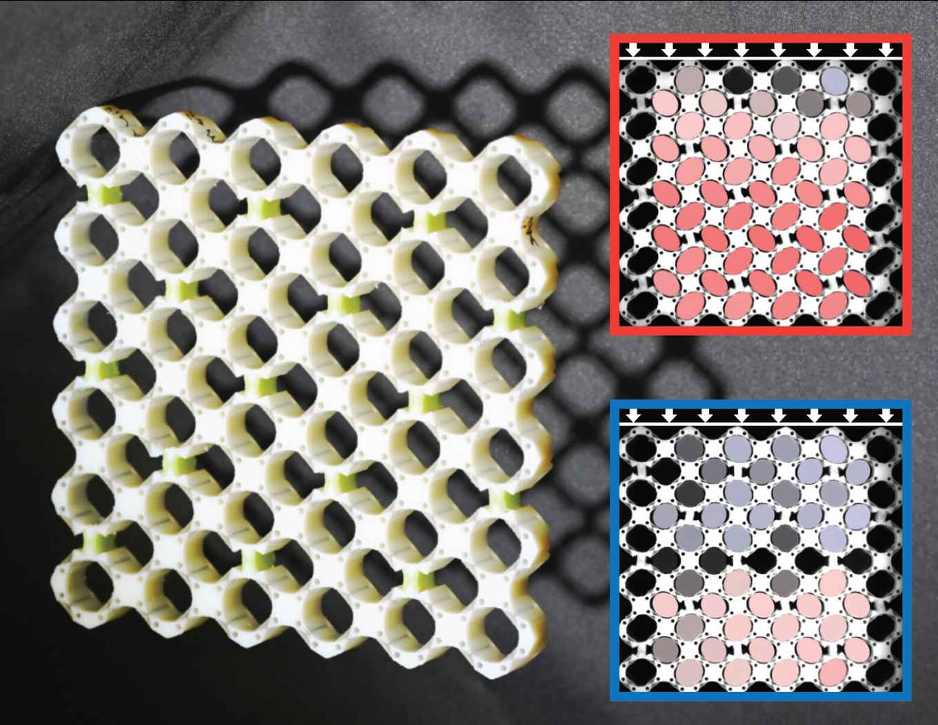 Het onderzoek dat leidde tot de nieuwe materialen werd uitgevoerd door de natuurkundigen Aleksi Bossart, David Dykstra, Jop van der Laan en Corentin Coulais van de Universiteit van Amsterdam. Met behulp van de toolbox maakten ze een materiaal waarvan het gedrag verandert als het snel of juist langzaam samengeperst wordt. Dergelijke nieuwe materialen kunnen erg nuttig zijn bij het ontwerp van schokdempers in auto’s, voor bouwmaterialen die aardbevingen kunnen weerstaan, of voor stroom-regulerende drukventielen.
