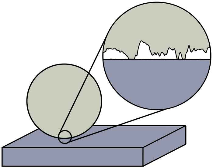 In hun experiment drukten Liang Peng, Thibault Roch, Daniel Bonn en Bart Weber een glad siliciumoppervlak tegen een ruw oppervlak. De onderzoekers, van de Universiteit van Amsterdam en het Advanced Research Center for Nanolithography, onderzochten vervolgens hoe de wrijving zich gedroeg wanneer de kracht waarmee de twee oppervlakken tegen elkaar werden gedrukt varieerde. Wordt het moeilijker om de twee oppervlakken langs elkaar te laten glijden als je harder drukt? En, belangrijker nog: waarom?