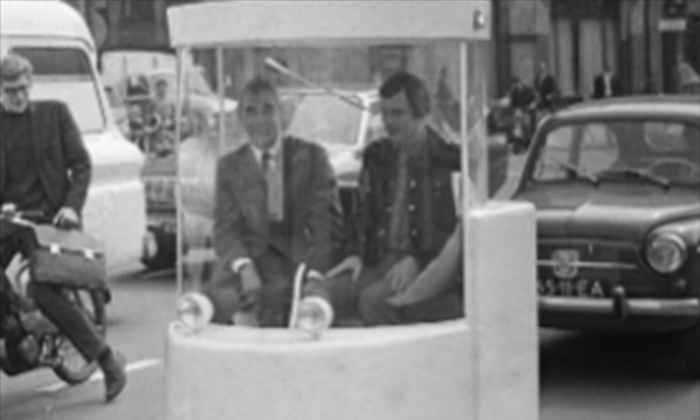 Al vroeg in het debat over automobiliteit in Amsterdam had hun Wittefietsenplan uit 1965 automobiliteit gediagnosticeerd als een regime van ruimtelijk geweld. Omdat dat plan uiteindelijk werd afgewezen, probeerde de Witkar die culturele logica te heractiveren—maar ditmaal herschikt om binnen de logica van de automobiliteit zelf te functioneren. De Witkar was ontworpen door voormalig Provo-activist Luud Schimmelpenninck. Hij vormde de auto om tot een traag en bewust onaantrekkelijk apparaat—wat de ontwerpers een “kwetsbare schil” noemden, en omstanders “een rijdende telefooncel.'