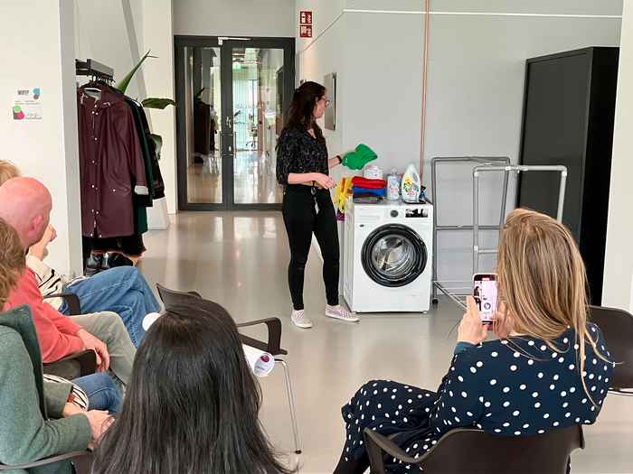 Om het probleem tastbaar en zichtbaar te maken en om zowel UvA-medewerkers, studenten als andere Amsterdammers erbij te betrekken, heeft SISTEM-NL de handen ineengeslagen met het altijd gastvrije SustainaLab en daar een wasmachine geïnstalleerd.