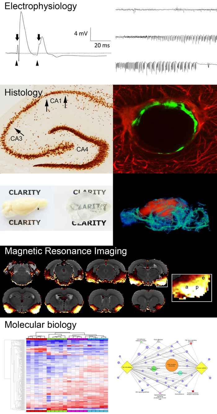 In our studies we use neurophysiological (EEG, field potentials in vivo and intracellular recordings in (cultured) brain slices), anatomical (tracing, immuno- and histochemistry), molecular (in situ hybridization, quantitative-PCR, western blot, microarrays, next generation sequencing) and imaging (magnetic resonance imaging) techniques to get insight in the processes that ultimately lead to epilepsy. Using in vitro and in vivo preclinical models and resected brain tissue from patients, we seek to unravel the mechanisms of drug-resistance and development of epilepsy (=epileptogenesis), to find biomarkers and to apply a treatment that could prevent epilepsy. We presently focus on treatments aimed at the blood-brain barrier, neuroinflammation and the cannabinoid system.